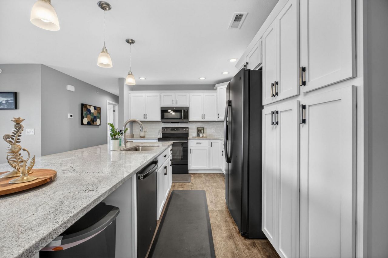 Welcome to this beautifully upgraded condo offering stylish, low-maintenance living with thoughtful enhancements throughout. The kitchen features granite countertops, tile backsplash, black smudge-proof stainless steel appliances, an extended island, and added pantry storage. The living room includes dimmable LED lighting and a cozy fireplace with blower and custom tile surround. You'll also appreciate along with upgraded patio storage spaces. Additional highlights include soft-close cabinetry, upgraded hardware, and clean white trim and doors throughout. Kitchen appliances are included. Enjoy easy living with HOA dues of $210/month. This move-in ready condo offers the upgrades you've been looking for without the hassle.