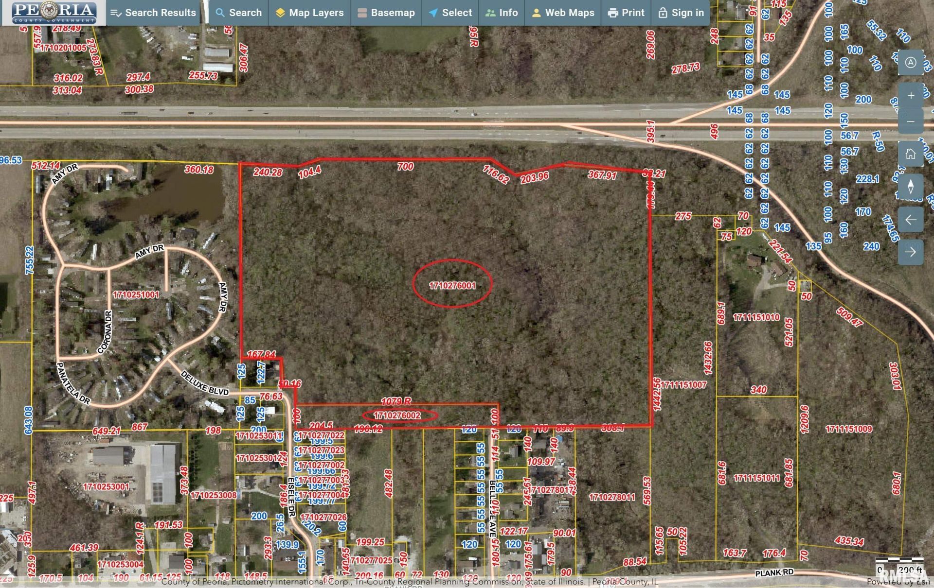 This sale includes two parcels totaling 41.48 acres in Bellevue (Peoria, IL 61604). The property is zoned R-1 and makes excellent recreational land or future housing development. This land can best be accessed via Bellevue Ave at the north end of the road. It runs from the Plank Road address on the south to the Interstate Access road at the Farmington Road/I-474 exit on the north. Firearms hunting is not allowed as the property is within village city limits. Utilities to site will need to be verified with a survey.
