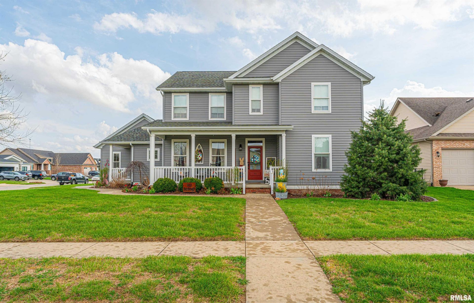 Sitting awfully pretty on a fenced .34-acre corner lot in Parkwood Prairies is this stunning 2014 custom constructed 4-bedroom, 4 full bath two story vinyl sided showplace home! Main floor of home boasts a gracious front facing living room with rustic wood flooring in addition to a double-sided gas log fireplace that opens into a roomy dining area with ample room to accommodate a large table and chairs, gorgeous equipped kitchen with ample cabinetry, solid surface countertops, adjacent walk-in pantry, and a sprawling center island/breakfast bar, comfortably sized bedroom, full hall bath, and a wonderful enclosed side porch/mudroom/drop zone. Upstairs, you will find three nice sized bedrooms, a full hall bath, and an ultra-convenient extra-large laundry room area. The rear facing primary suite is home to awesome built-ins, an amazing large walk-in closet with a custom setup, in addition to a striking private full tiled bath with a double vanity in addition to a large tiled walk-in shower. The full mostly finished basement offers a large family room, rec room, fourth full bath, office area, and ample storage/work space. The three-car sided facing garage offers overhead floored walk-up attic storage -- NICE! Property also features covered front, side, and rear porch areas, Andersen windows, two furnaces/two central air conditioning units, 18X36 heated inground swimming pool with an adjacent pool house and patio area, and all appliances to remain. What is not to love here?!